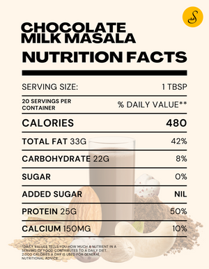 Satvic Foods' Chocolate Milk Masala powder is not intended to diagnose, treat or cure any disease. It is recommended to consult with your doctor or nutritionist before consuming any homemade masala products. CONTAINS: PEANUTS