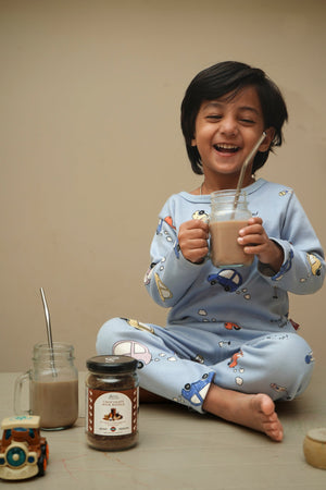 Provides Energy: Our chocolate milk masala contains a healthy dose of carbohydrates, proteins, and healthy fats, providing sustained energy to your child.