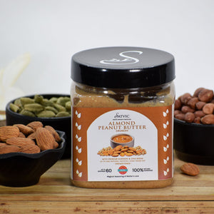 Satvic Foods’ Almond Peanut Butter is a blend of all-natural dry fruits. To ensure that the raw materials have a huge shelf life and are good for your health, we have sun-dried them and slowly roasted them without adding any fat. Unlike other Almond Peanut Butter, which has preservatives, salts, or oils, Satvic Foods’ Almond Peanut Butter has Chia Seeds, Sunflower Seeds, and more. Such vital natural herbs boost immunity and promote a healthy lifestyle!