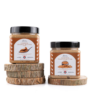 Satvic Foods' Almond Peanut Butter & Cashew Peanut Butter is not intended to diagnose, treat or cure any disease. It is recommended to consult with your doctor or nutritionist before consuming any homemade products. CONTAINS: PEANUTS