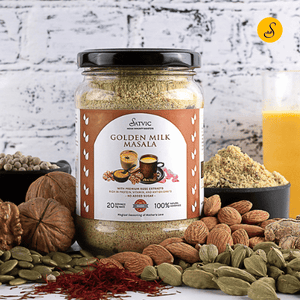Immerse yourself in the goodness of our Golden Milk Masala, a luscious blend of handpicked, all-natural ingredients meticulously crafted to create a harmonious symphony of flavors. Experience the perfect balance of aromatic spices like turmeric, cinnamon, ginger, and more, expertly combined to create a blissful cup of golden milk. Packed with antioxidants and immune-boosting properties, our Golden Milk Masala is a comforting companion during the monsoon season.